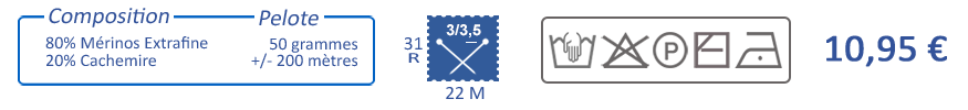 Un merveilleux fil pour vos ouvrages automne / hiver haut de gamme, qui se tricote idéalement en aiguilles n° 3,5 avec un rendement important, en pelotes de 50 grammes pour 200 mètres  !