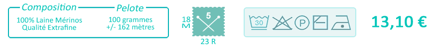 Comme toutes nos mérinos, la "5" est en qualité extrafine et s'entretient en machine programme laine.